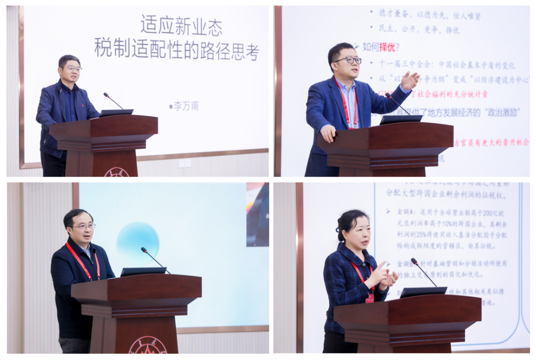 学术研讨环节,中国税务学会副会长李万甫以新业态的理论内涵与实践特征为切入点,在梳理新业态政策与发展规律的基础上,系统阐述了构建同新业态相适应的税收制度的思考框架。复旦大学经济学院副院长寇宗来从区域竞争向全国统一大市场演进的视角切入,指出要破解当前的“内卷式”竞争,关键在于重塑地方政府的竞争逻辑,实现有为政府与有效市场的结合。中国人民大学财政金融学院教授谢波峰提出,要敏锐把握数字技术、数据要素发展给财税治理带来的发展契机,探索构建数智时代的税收制度,服务中国式现代化全局。山东大学经济学院教授李文从“双支柱”解决方案视角出发,深入剖析了“双支柱”方案的进展、面临的挑战及背后的博弈关系。本环节由山东大学国家治理研究院副院长、经济学院常务副院长石绍宾主持。