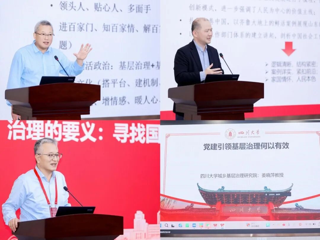 学术研讨环节,复旦大学国际关系与公共事务学院唐亚林教授以“在街巷看见中国”为主题,从小巷总理、情感治理与生活政治三个部分展开,提出了街巷生活政治策略,具体包括绩、法、理、情、势五个方面。中国人民大学社会学院陈那波教授剖析了当前中国基层治理存在三大核心矛盾,从党建引领理念、基层治理准则、基层治理出发点、基本单元的确定、行政资源配给、技术引入、队伍管理七个方面提出破解之道。四川大学公共管理学院姜晓萍教授以“党建引领基层治理何以有效”为主题,围绕领悟党建引领基层治理的根本遵循、党建引领基层治理的典型样本、谋划党建引领基层治理实施策略三个部分,介绍了党建引领基层治理的“成都经验”。山东大学政治学与公共管理学院方雷教授以理解和把握国家治理的要义区别作为引入,阐明当前中国强调党建引领的时代性和必要性,结合中国社会制度的知识内涵及其价值,认为需要从国家与社会之间寻找新的平衡点,为人类知识体系作出更大贡献。